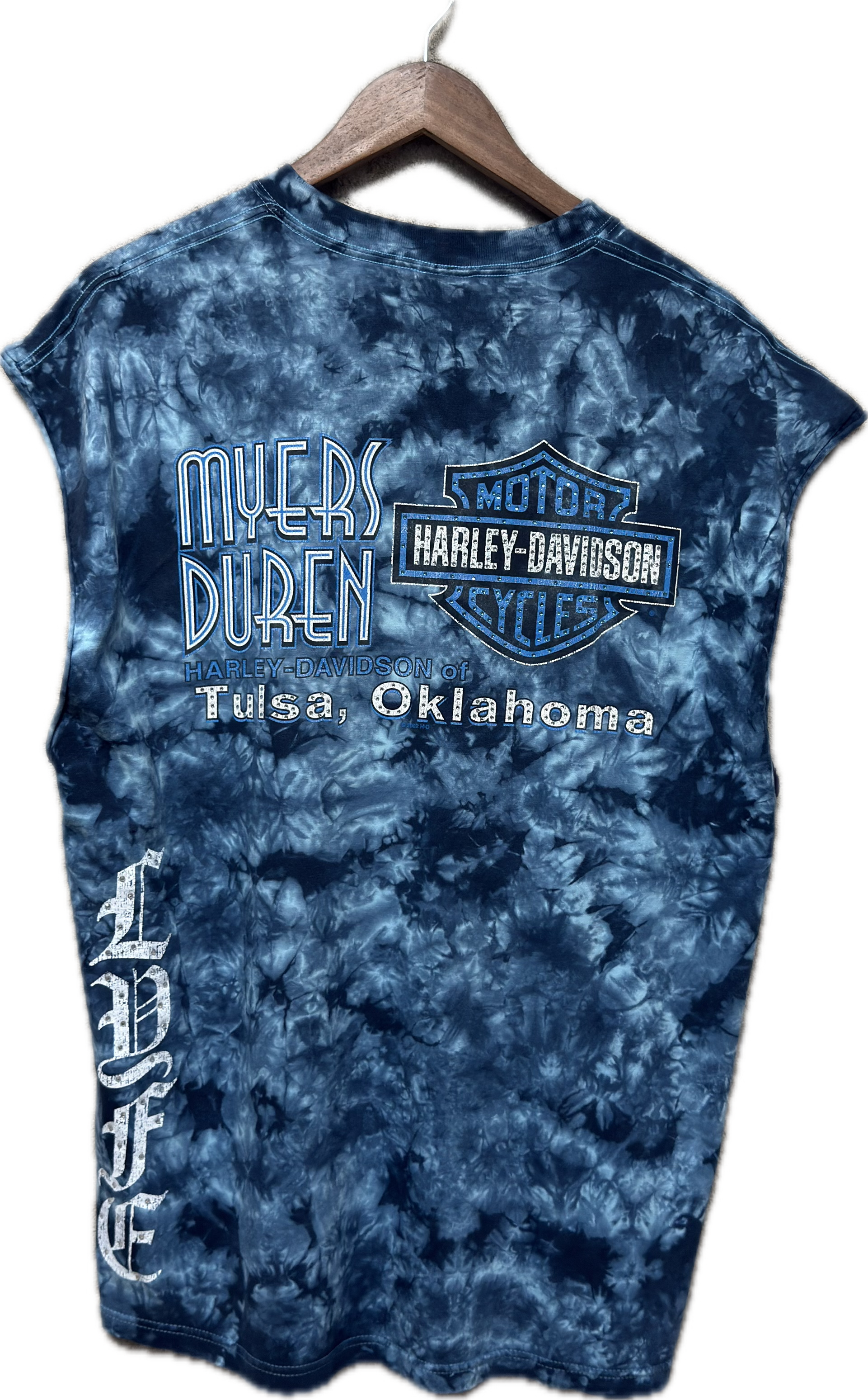 But that’s not all — each piece is then individually hand-studded with premium crystal-clear rhinestones, adding a flash of underground glam that sparkles under city lights or stage beams. No two tees are alike — expect subtle differences in fade, ink wear, and rhinestone layout that make your tee one of one.
